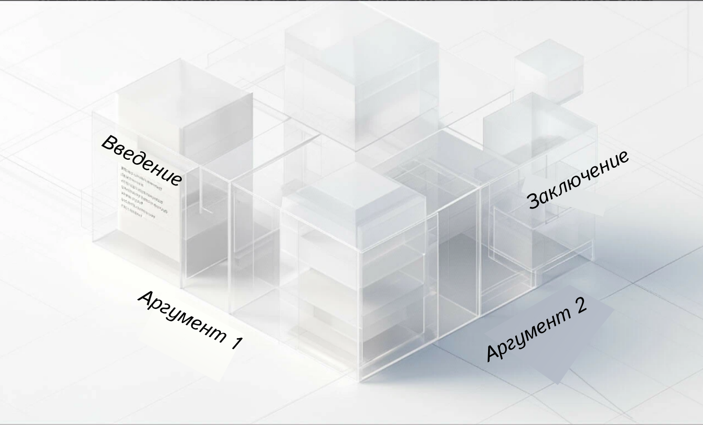 Без чёткого плана сочинения на ОГЭ даже хорошие мысли теряются. На этом этапе ученики получают универсальный «каркас» — классическую трёхчастную структуру: введение, основная часть, заключение. Важно показать, что это не формальность, а логическая необходимость для высокого балла по критериям.