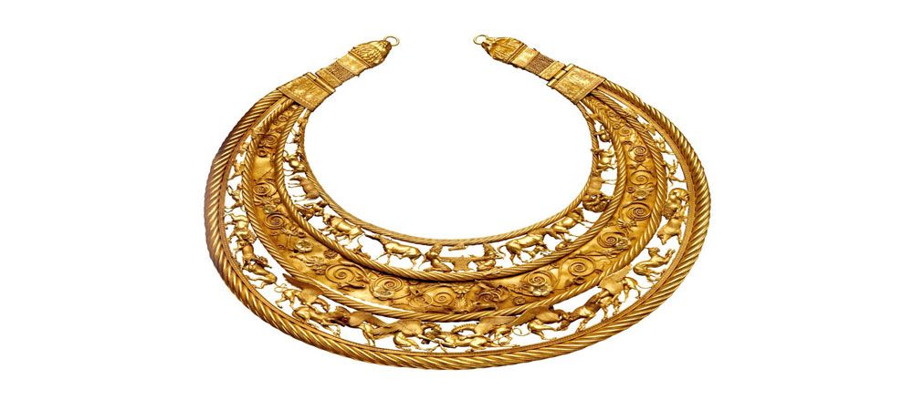 Это не просто ожерелье, а массивное нагрудное украшение из золота, которое носили скифские цари или знатные воины. Оно символизировало власть, богатство и связь с миром духов.